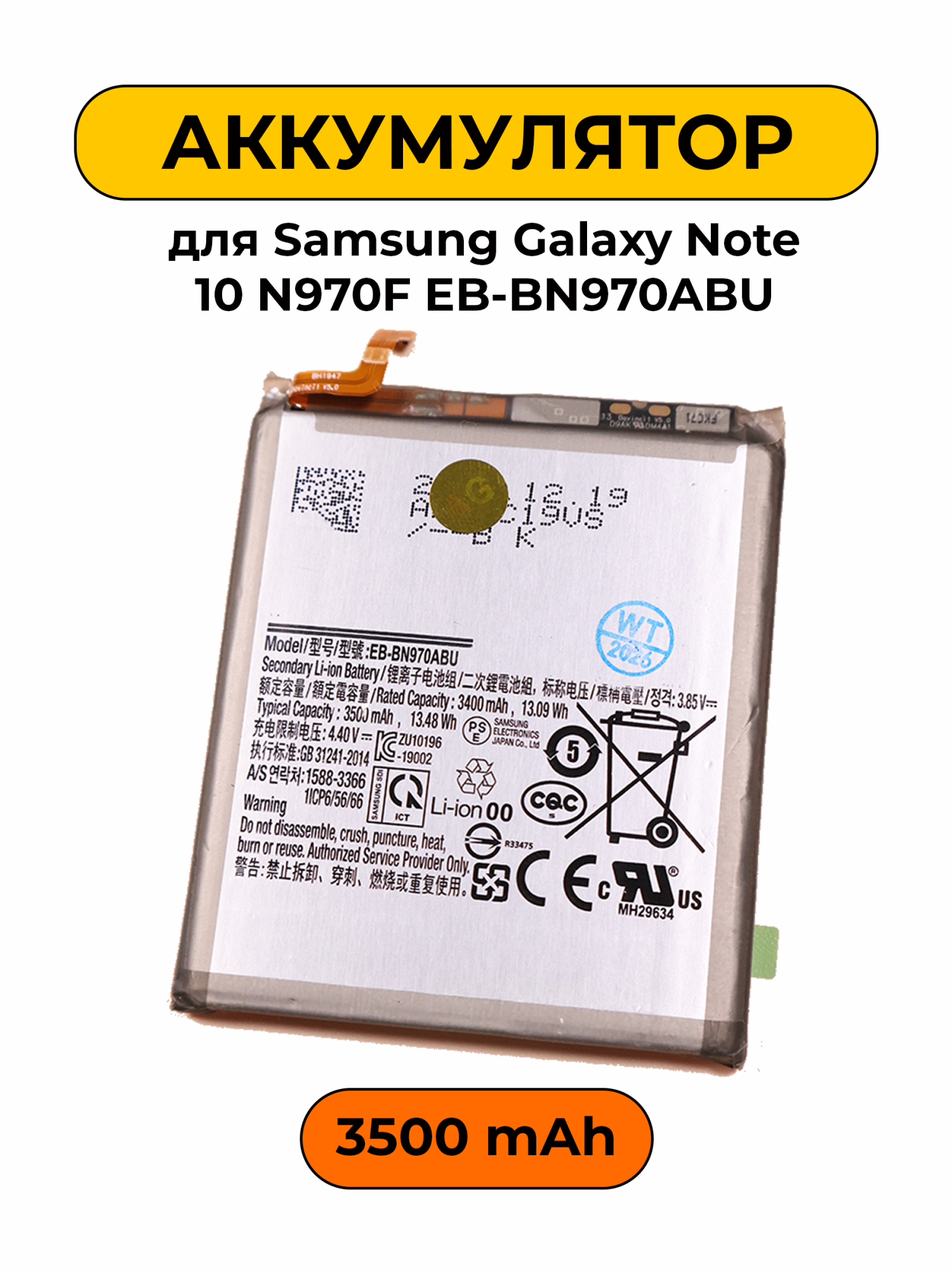 Данная модель совместима исключительно с смартфоном Samsung Galaxy Note 10 N970F, что гарантирует оптимальное соответствие и производительность. Аккумулятор выполнен в стандартном цвете, что делает его практически незаметным при установке, сохраняя стиль вашего устройства.